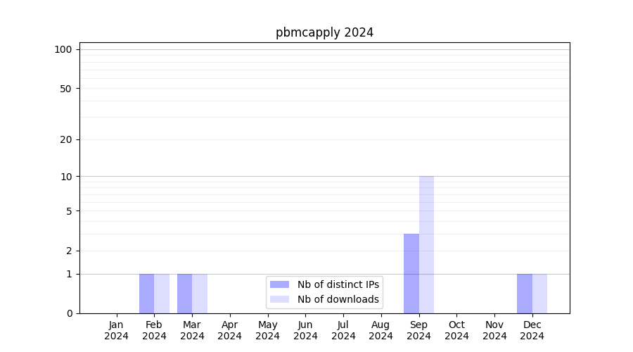 Number of downloads for workflow package pbmcapply, year by year, from 2025 back to 2015 (years with no downloads are omitted):
