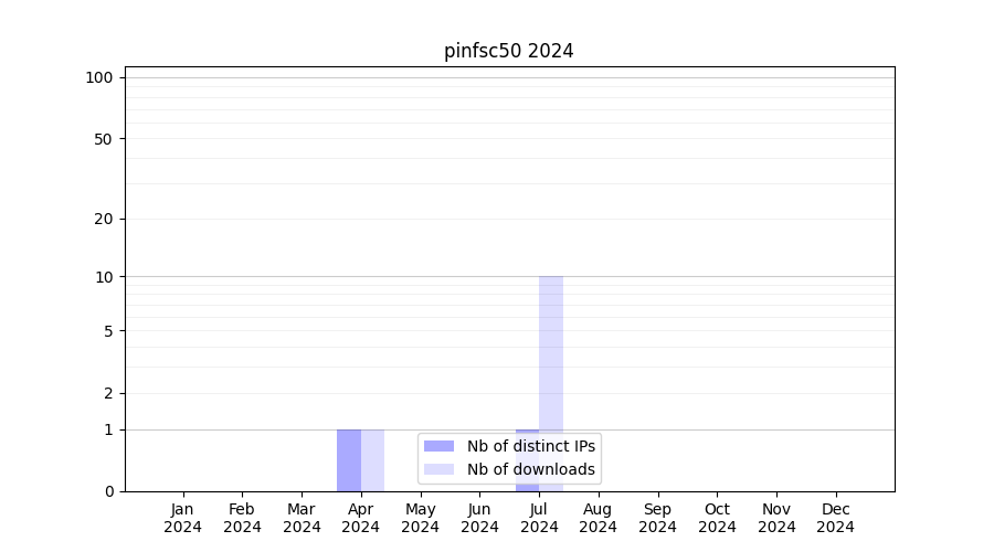Number of downloads for workflow package pinfsc50, year by year, from 2025 back to 2015 (years with no downloads are omitted):