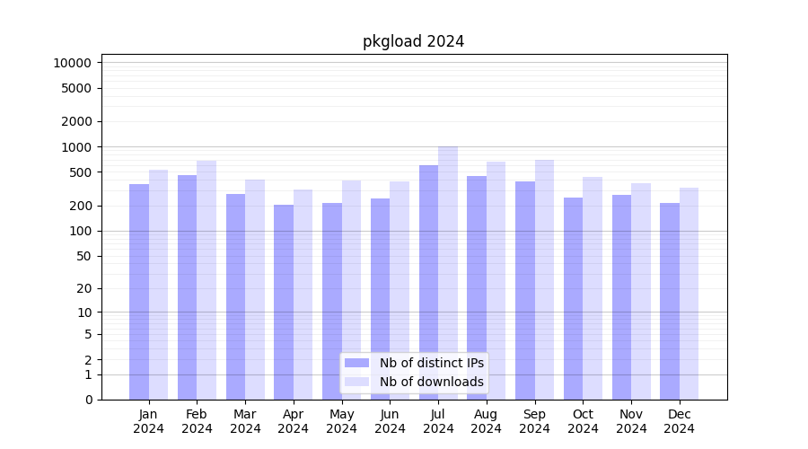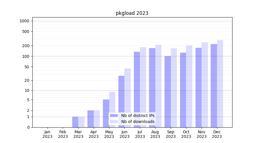 | Month | Nb of distinct IPs | Nb of downloads |