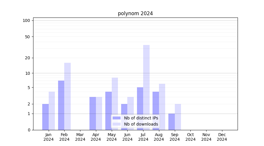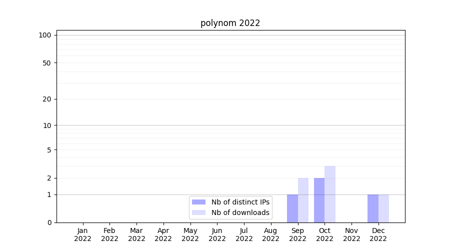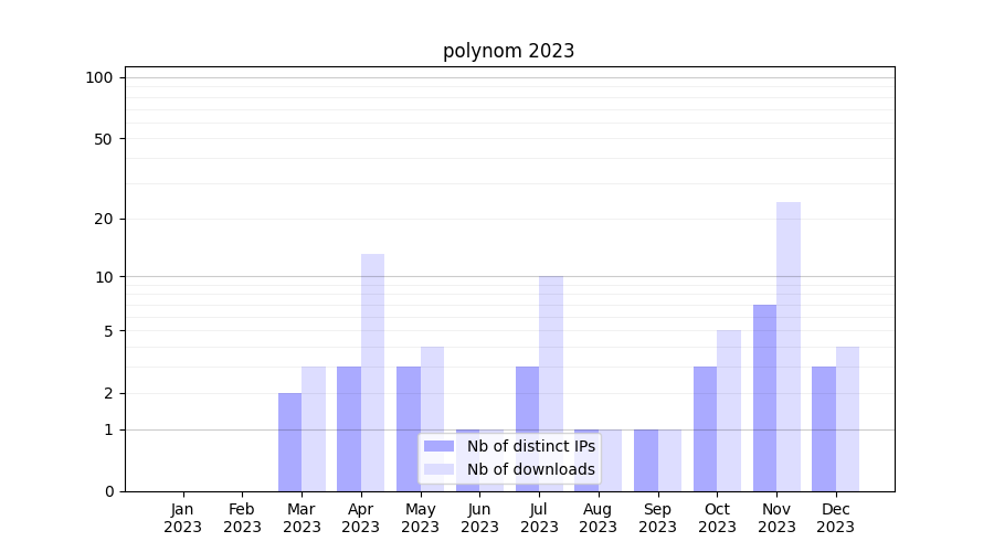 Number of downloads for workflow package polynom, year by year, from 2025 back to 2015 (years with no downloads are omitted):