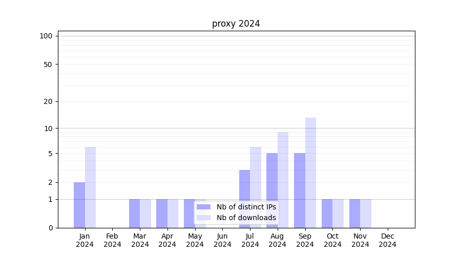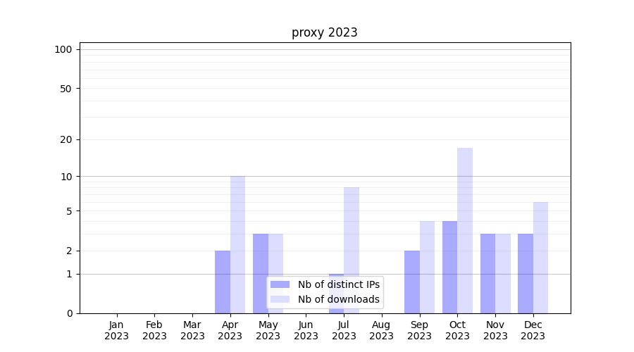 | Month | Nb of distinct IPs | Nb of downloads |