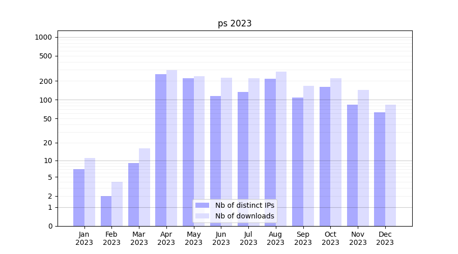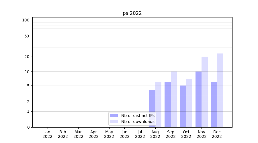 Number of downloads for workflow package ps, year by year, from 2025 back to 2015 (years with no downloads are omitted):