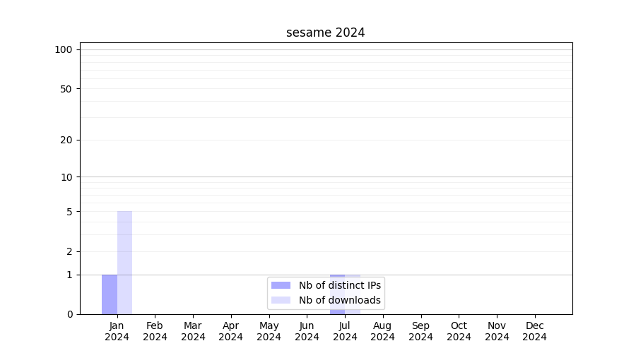 Number of downloads for workflow package sesame, year by year, from 2025 back to 2015 (years with no downloads are omitted):