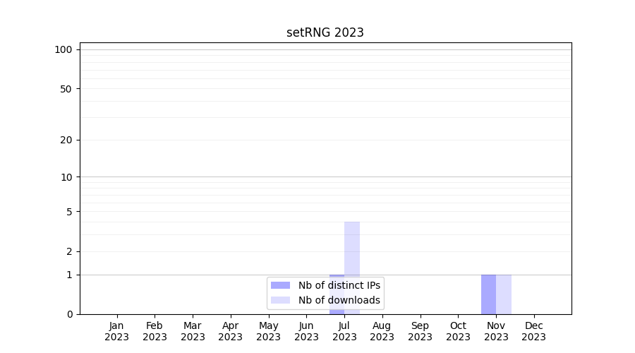 Number of downloads for workflow package setRNG, year by year, from 2025 back to 2015 (years with no downloads are omitted):