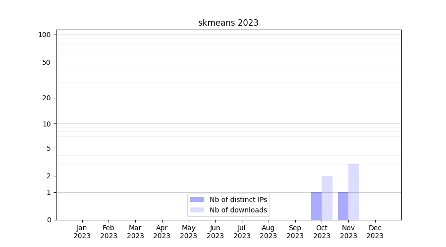 Number of downloads for workflow package skmeans, year by year, from 2025 back to 2015 (years with no downloads are omitted):