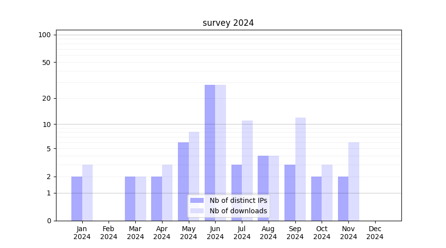 Number of downloads for workflow package survey, year by year, from 2025 back to 2015 (years with no downloads are omitted):