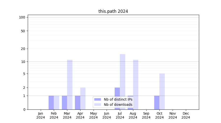 Number of downloads for workflow package this.path, year by year, from 2025 back to 2015 (years with no downloads are omitted):