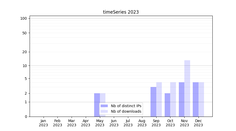 | Month | Nb of distinct IPs | Nb of downloads |
