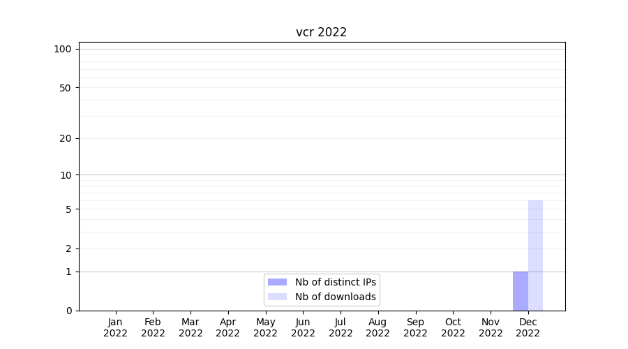 Number of downloads for workflow package vcr, year by year, from 2025 back to 2015 (years with no downloads are omitted):