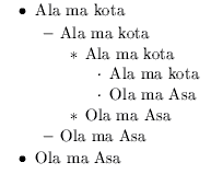 Lista nienumerowana może być zagnieżdżana do 4 poziomów.